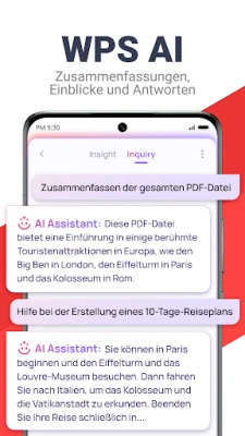 Befreien Sie sich von der Last umfangreicher Dokumente dank der intelligenten Funktionen von WPS AI. Führen Sie interaktive Gespräche mit PDFs, um augenblicklich Zusammenfassungen, Gliederungen oder Übersetzungen zu erhalten, ohne sich durch endlose Seiten kämpfen zu müssen. Die fortschrittliche KI-gesteuerte OCR-Technologie von WPS AI transformiert zudem gescannte Dokumente in verwertbare Informationen, indem sie die Dateneingabe drastisch vereinfacht und wertvolle Erkenntnisse aus jedem Papierdokument extrahiert. Diese tiefgreifenden Analysefunktionen machen das Verwalten und Verstehen von Informationen so mühelos wie nie zuvor.